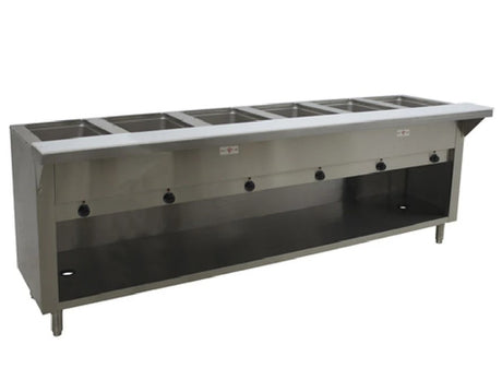 Log in for pricingAdvance Tabco 6 Pans Stainless Steel Sealed Well Electric Hot Food Table